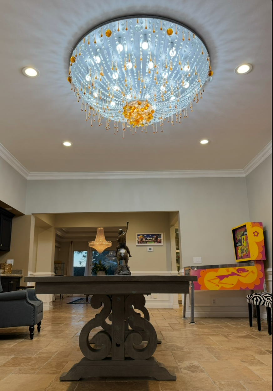 At almost 8,000 sq. ft. the mansion is a true sanctuary of luxury, located on a double lot overlooking the prestigious Las Vegas Country Club golf course. Just minutes from the Wynn Hotel and Airport. This exquisite mansion offers so much that you’ll find it hard to ever want to leave, with every imaginable luxury and amenity available right at your fingertips. Situated on a double lot overlooking the prestigious golf course within the exclusive Las Vegas Country Club, this home is a true sanctuary of sophistication. Just five minutes from the iconic Wynn Hotel and ten minutes from Harry Reid International Airport, it combines unrivaled elegance, convenience, and security. The property boasts a massive front driveway that provides incredible curb appeal. This expansive space can easily accommodate up to 10 cars or multiple RVs, making it perfect for hosting gatherings or for residents with a collection of vehicles. As you step inside, you’re greeted by a dazzling oversized crystal chandelier that illuminates the grand foyer and a stunning matted marble staircase. Every detail of the home has been meticulously designed, featuring only the finest real wood and stone flooring throughout, with no carpet to disrupt its timeless elegance. This property is more than just a home; it’s an experience. Original artwork is displayed throughout the estate, turning it into a private art gallery that elevates every space. Multiple living and dining areas provide versatility for hosting and relaxation. One of the grand living rooms features an 80-inch flat-screen television, while others are outfitted with luxurious seating perfect for gatherings or quiet retreats. Dining options include a formal dining room, a casual breakfast nook, and additional spaces for every occasion. For those looking to embrace the Las Vegas lifestyle, the home features authentic Vegas-inspired entertainment, including a vintage pinball machine and slot machines, bringing the city’s iconic vibe to your doorstep. The upper level houses four spacious bedrooms, including a lavish master suite designed as the ultimate sanctuary. The master bedroom features separate walk-in his-and-her closets for ultimate convenience, as well as an additional cedarwood closet, perfect for storing high-end and delicate clothing. The remaining three bedrooms include en-suite bathrooms, large walk-in closets, and plush furnishings, while a fourth bedroom offers a private balcony with spectacular views of the golf course. In total, the home offers five impeccably renovated bathrooms, all featuring spa-like amenities. Adding to the estate’s allure are multiple bonus rooms that can be tailored to suit your needs, whether as a media room, gym, or creative studio. A hidden panic room, cleverly disguised as an elegant library, opens to reveal a spacious and secure secret area, seamlessly blending functionality with luxury. Outdoor living is just as impressive, featuring a resort-style swimming pool and hot tub with picturesque views of the golf course. The recently renovated master bathroom offers a Jacuzzi tub for ultimate relaxation. For those who work remotely, the home includes a private office space, perfect for virtual meetings or business pursuits. The estate also includes a private Casita with its own entrance, a cozy living room, a kitchenette, and endless possibilities for guest accommodations or personal use. The main kitchen is a chef’s dream, equipped with state-of-the-art appliances, expansive countertops, and a seating area designed for entertaining. Additional amenities include a three-car garage capable of housing two limousines, abundant storage space, and 24-hour security within the guard-gated Las Vegas Country Club community. Offered fully furnished, this mansion is a masterpiece of luxury and design. With its 8,000 square feet of living space, art gallery-like ambiance, Vegas-inspired features, and an abundance of amenities, this home provides an unparalleled living experience. From the expansive driveway to the finest details within, this estate is a one-of-a-kind sanctuary where everything you need is at your fingertips.